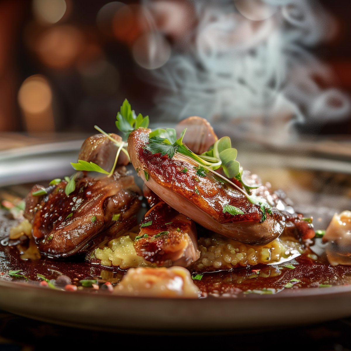 Woodcock Searing: Sear the woodcock breast quickly until rare.